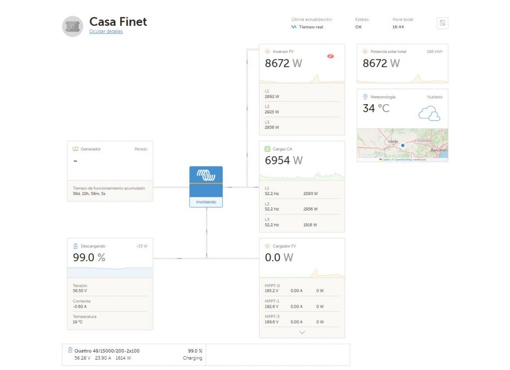 - 9 inversores/cargadores Quattro 15kVa (145 kVa)