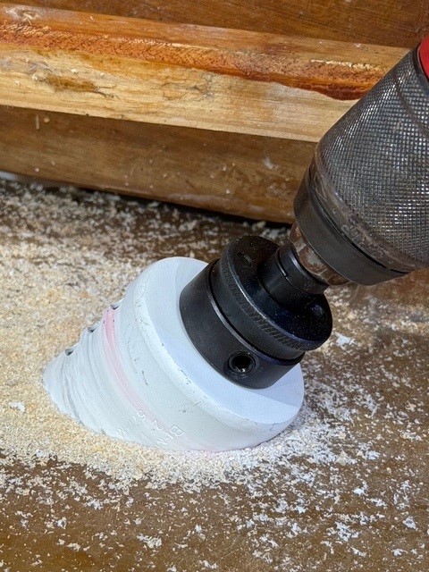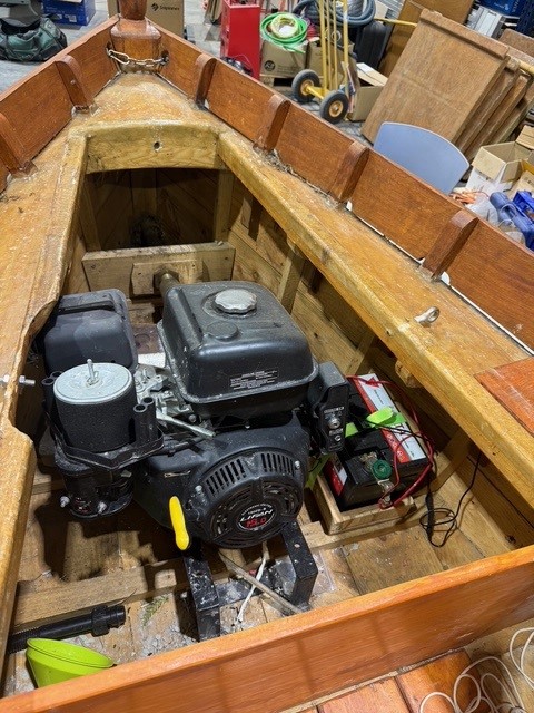 Tras sacar la barca a dique seco se inician los trabajos de retirada de motor y puesta a punto de la embarcación.